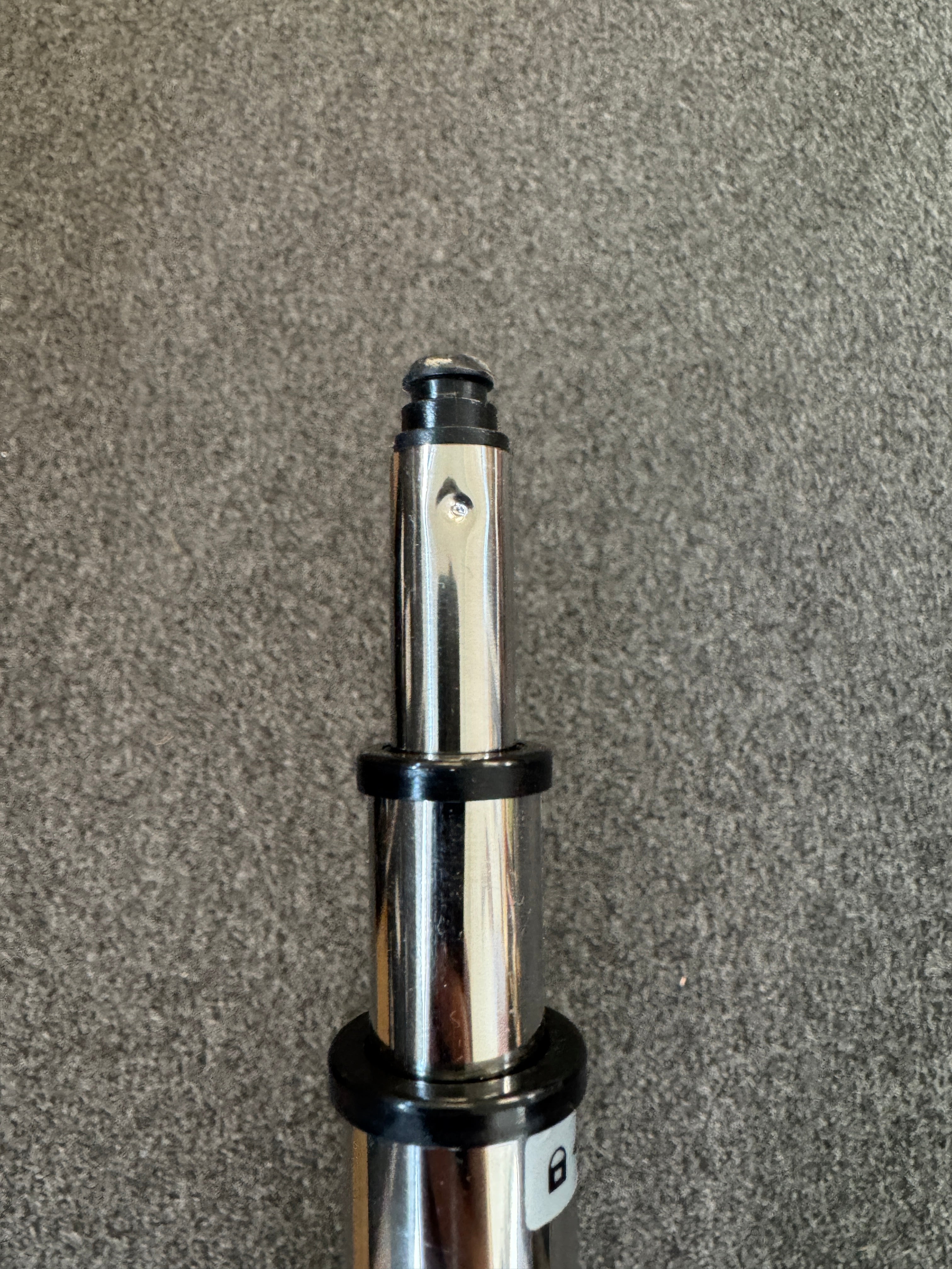 - Halten Sie die andere Seite der Stange hoch (die normalerweise in den Dampfer geschraubt ist).