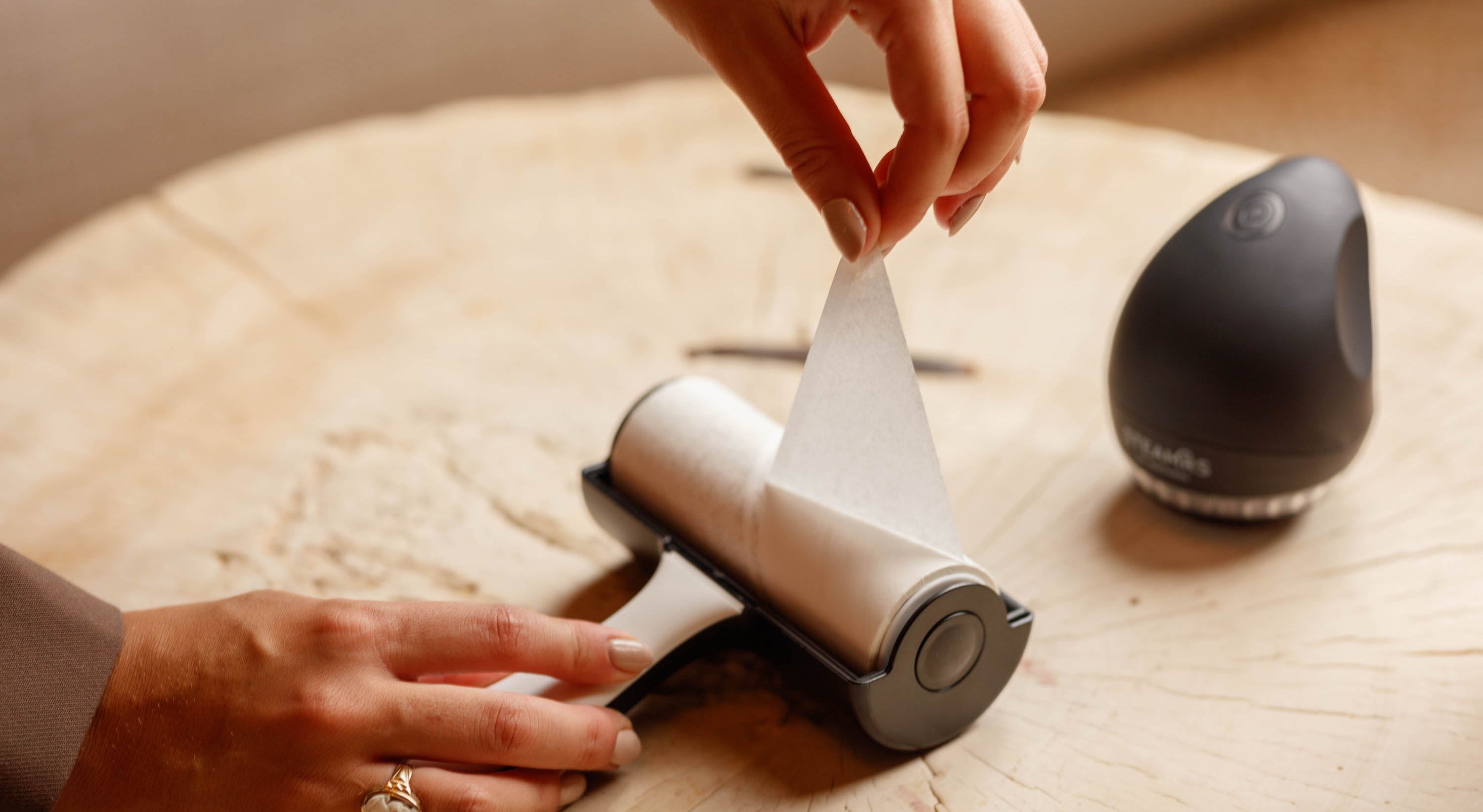 Entfernen Sie mühelos (Tier-)Haare und Flusen von Ihrer Kleidung oder Ihren Möbeln. Luxuriöses Design, starker Klebstoff, recyceltes Material. Mit intelligentem Schließsystem.