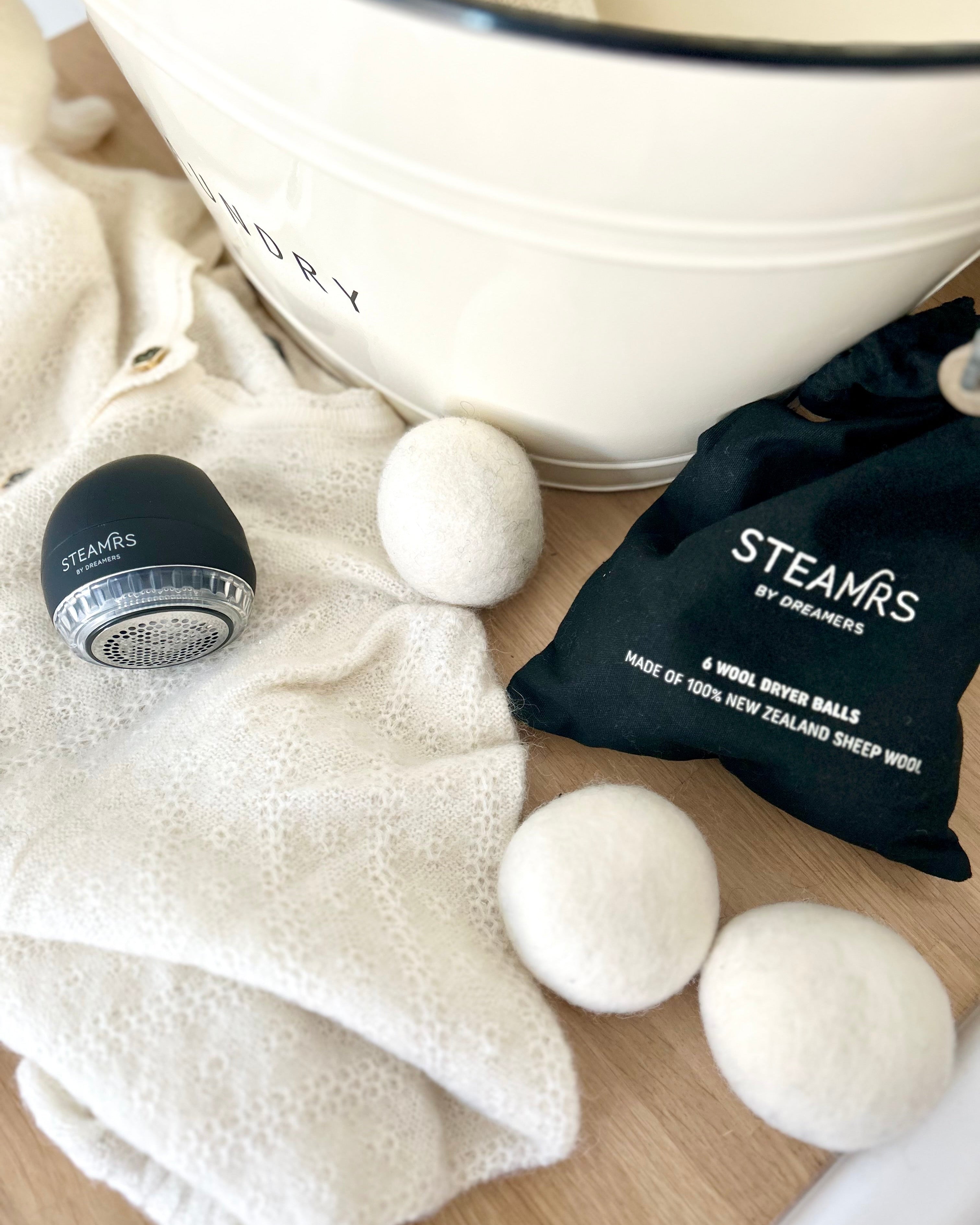Wool dryer balls last for an average of 1,000 drying cycles, which equates to years of use. This makes them a cost-effective choice and a sustainable alternative to disposable products like dryer sheets. STEAMRS offers dryer balls made from Merino sheep wool. This special wool has antibacterial properties, making it an ideal extra benefit during drying. You can find more information about dryer balls in our blog about dryer balls.